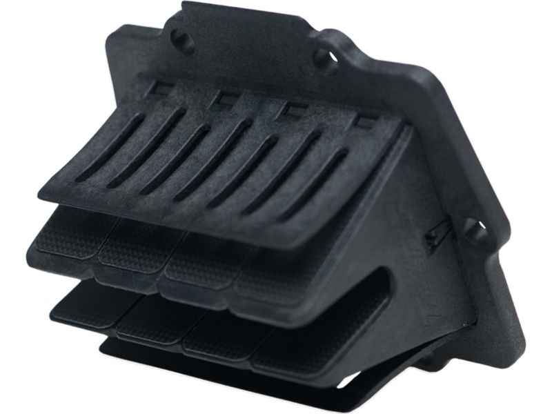 Incorporates the industries first and only patented snap together reed valve design. The entire assembly is completely screw free