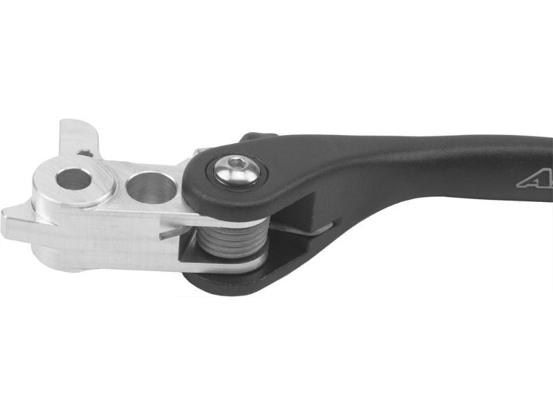 This is the original folding lever. They are adjustable for hand size and move to prevent damage in a crash. ARC‘s aluminum levers are forged for durability and then CNC machined for accuracy. The "knee" is made from billet aluminum. All of the hardware is top grade. These are the same levers that many of the top pro's run.