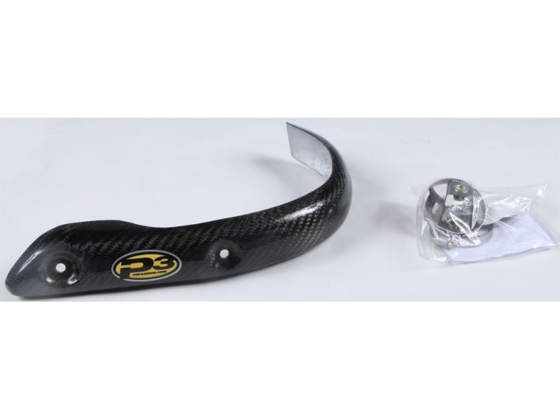 P3 Carbon Fiber Composite 4-Stroke Head Pipe Guard/Heat Shields are a must for any 4-Stroke rider. This product serves three purposes. 1) The Heat Shield keeps your expensive riding pants and boots protected from super heated exhaust pipes. 2) The Pipe Guard protects your sensitive head pipe from unwanted dents and dings. 3) P3's polished carbon product and colorful logo gives your off-road machine a full factory racing look!