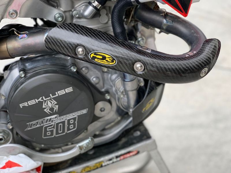 P3 Carbon Fiber Composite 4-Stroke Head Pipe Guard/Heat Shields are a must for any 4-Stroke rider. This product serves three purposes. 1) The Heat Shield keeps your expensive riding pants and boots protected from super heated exhaust pipes. 2) The Pipe Guard protects your sensitive head pipe from unwanted dents and dings. 3) P3's polished carbon product and colorful logo gives your off-road machine a full factory racing look!