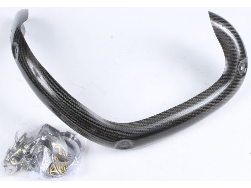 P3 Carbon Fiber Composite 4-Stroke Head Pipe Guard/Heat Shields are a must for any 4-Stroke rider. This product serves three purposes. 1) The Heat Shield keeps your expensive riding pants and boots protected from super heated exhaust pipes. 2) The Pipe Guard protects your sensitive head pipe from unwanted dents and dings. 3) P3's polished carbon product and colorful logo gives your off-road machine a full factory racing look!