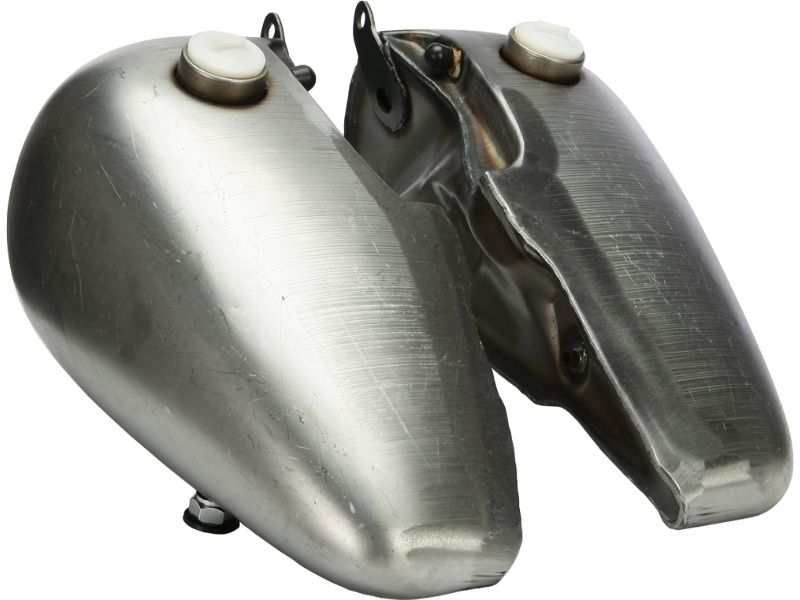 Reproductions of the classic Fat Bob gas tank. Mounting is made to OEM specifications for a perfect fit on stock Harley 4 Speed Big Twin frames thru 1984 (except Softails). Also fits custom rigid and swing arm frames. Each tank is made to accept either the FX style dual instrument dash or the FL-FXWG style large speedo dash. Available in 3.5 gallon and 5 gallon. Tank accepts OEM or after market gas caps and fuel valve.