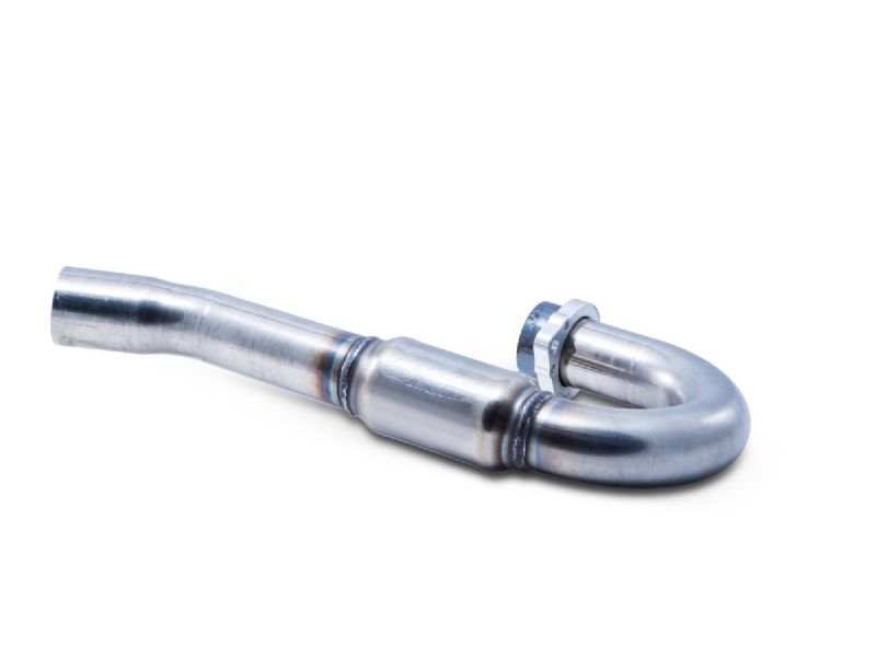 The FMF Power Bomb is a four stroke header pipe unit that has a unique bulge precisely located in the header system. A "pre muffler" of sorts, the Power Bomb actually lowers sound output because it creates more surface area to absorb the sound medium (exhaust). The surface area of the perforated core lets the sound exit into the absorbing material (steel wool packing) and then allows the air to expand, cool and ramp back up with the higher pressure air. The result? The FMF Power Bomb is instrumental in reducing the decibel level on any four stroke and because of the expansion and contraction on exhaust through the system, the flow has been increased by nearly 10%. That means more power throughout the range.