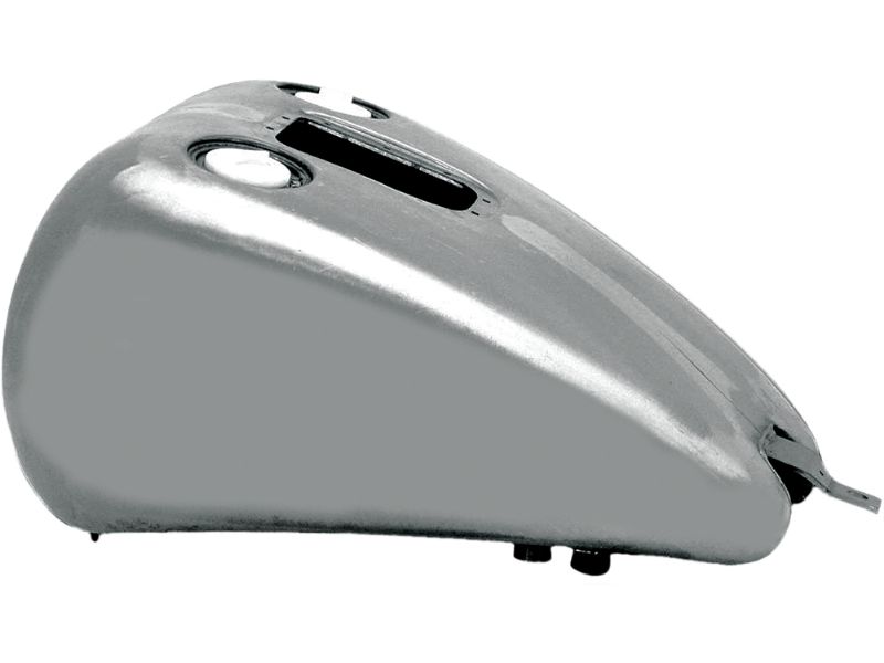 Gas tanks with dash mount for Twin Cam Softail models. Can be used with the stock or stock style seats. Made from heavy gauge steel for years of leak and trouble free riding. Tanks are available for use with OEM style Screw-In gas caps and the gauge equipped OEM left side cap. Available for carburetor and EFI models. Tanks take approx. 5.1 gallon.