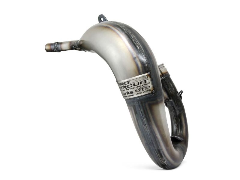 The original Pro Circuit Works pipe offers unparalled performance and power for every two-stroke application. Increased horsepower and torque gains will quickly be noticed across the entire rpm range. The unplated, oiled metal finish requires some maintenance, but really gives your bike that "Works Look".