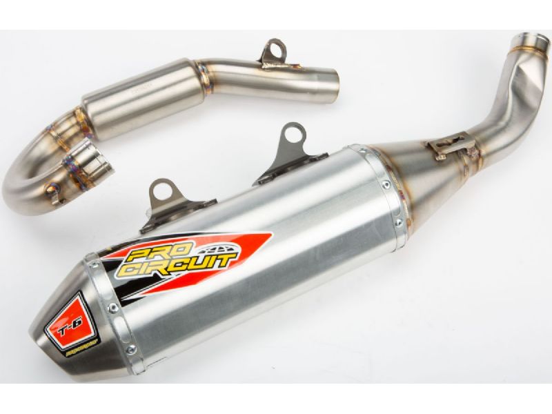 The T-6 Stainless Steel Exhaust System offers the same benefits as our popular Ti-6 Titanium Exhaust System, but the T-6 is constructed of stainless steel and aluminum for increased strength and durability while giving riders a more affordable alternative to titanium. The T-6 comes with a removable United States Forest Service (USFS) Approved Spark Arrestor making it easy to alternate between off-road and closed course riding.