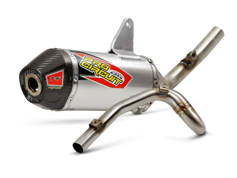 The T-6 Stainless Steel Exhaust System offers the same benefits as our popular Ti-6 Titanium Exhaust System, but the T-6 is constructed of stainless steel and aluminum for increased strength and durability while giving riders a more affordable alternative to titanium. The T-6 comes with a removable United States Forest Service (USFS) Approved Spark Arrestor making it easy to alternate between off-road and closed course riding.