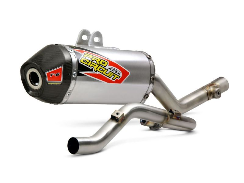 The T-6 Stainless Steel Exhaust System offers the same benefits as our popular Ti-6 Titanium Exhaust System, but the T-6 is constructed of stainless steel and aluminum for increased strength and durability while giving riders a more affordable alternative to titanium. The T-6 comes with a removable United States Forest Service (USFS) Approved Spark Arrestor making it easy to alternate between off-road and closed course riding.