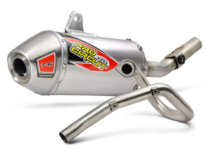The T-6 Stainless Steel Exhaust System offers the same benefits as our popular Ti-6 Titanium Exhaust System, but the T-6 is constructed of stainless steel and aluminum for increased strength and durability while giving riders a more affordable alternative to titanium. The T-6 comes with a removable United States Forest Service (USFS) Approved Spark Arrestor making it easy to alternate between off-road and closed course riding.
