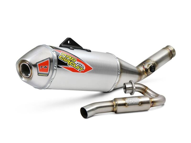 The T-6 Stainless Steel Exhaust System offers the same benefits as our popular Ti-6 Titanium Exhaust System, but the T-6 is constructed of stainless steel and aluminum for increased strength and durability while giving riders a more affordable alternative to titanium. The T-6 comes with a removable United States Forest Service (USFS) Approved Spark Arrestor making it easy to alternate between off-road and closed course riding.