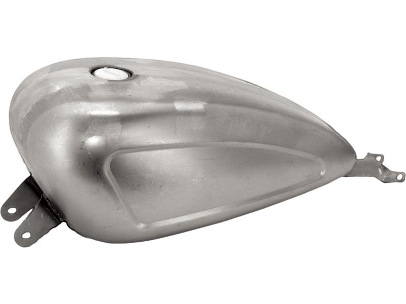 Peanut style tanks to fit 2004 to present stock Sportster frames. Fuel capacity is approximately 3.3 gallon. Available complete with your choice of stock style screw bung or pop-up style gas cap (included). Tanks are approximately 19" long, 11" wide, and 8" high.