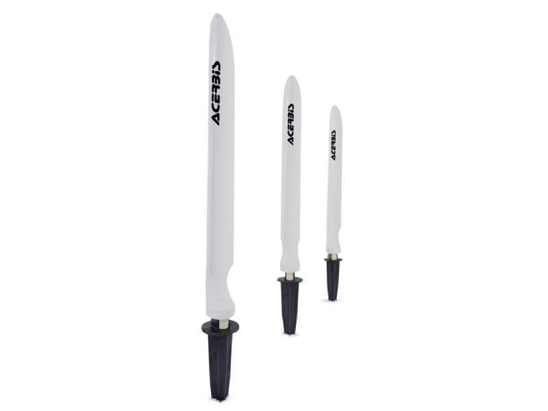 Acerbis track markers are highly visible yellow plastic stakes that are easily installed in the dirt on the side of the track. Not only do these stakes give the track a clean, professional appearance, they also are safer and easy to move than hay bales. As hay bales sit at the edge of the track, they become water logged from track watering. This can make them almost impossible to move, and hitting one or catching one with a footpeg almost always results in a crash. The design of our track markers allows the them to fold down when struck by a bike or quad, and then pop right back up. Also, they are quick and easy to move around because they simply press down into the dirt.
