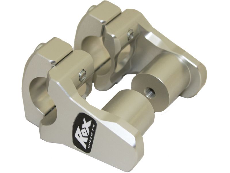 Low Pro 1¾" center to center rise for BMW F800GS and KTM's. This riser was developed around the F800GS ABS model. Riser barely clears the stock F800GS handlebar clamps and can be pivoted to your desired fore and aft location. Note; we moved our front brake perch inboard on the handlebar 3/8" as well to relieve even more brake line and to insure proper function. When installing these risers pivoted up and back on the F800GS, spin the OEM caps 180 degrees to make the final tightening bolt the forward bolt. Low Pro Riser clears KTM clamps as well, a recommended riser for the 990 Adventure with stock lines. Low Pro Riser also has (1) 8mm tap hole in the end of the posts to mount what ever you desire. Always check and confirm that your bike has adequate cable and brake line length before installing any handlebar risers.