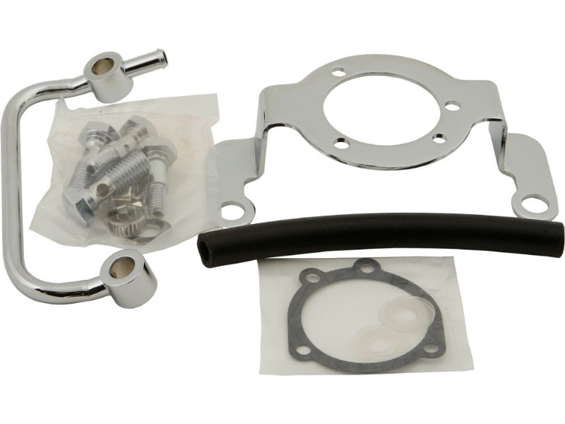 Use these brackets and breather kits when installing an aftermarket aircleaner. If a custom breather system is used, some support brackets are available without the breather system. Spacer 820-50525 can be used in conjunction with breather/bracket kit 820-50512 to mount aftermarket aircleaners with a CV/Delphi EFI bolt pattern to TBW models.
