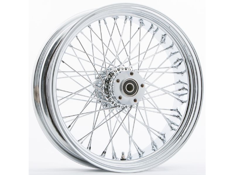 The Steel Chrome Rim is laced in three styles to the Chrome Billet Aluminum hub, in either the traditional 40-Spoke pattern, a custom 60 spoke pattern or the custom 48-Big Spoke with beefy 9mm spokes