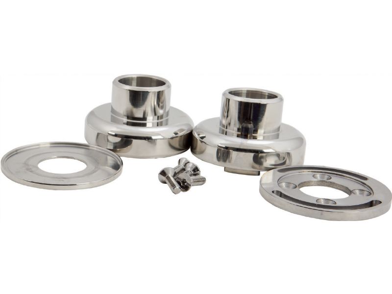 "Hourglass" style kit is used in necks that are 7" long. Used on later stock Harley-Davidson frames and many aftermarket custom frames. Fits all Pro-One Triple Trees and other brands with 4 pre-drilled holes. On brands without the necessary holes, kit can still be installed by drilling and tapping 4 holes. Easy to follow instructions included. Bearing Race fits 1.990" neck bore. Measure the neck bore where the races install in the neck, or the length of the neck to be sure this is the kit you need. Press-in bearing cup style kit is used on many older Harley-Davidson frames and many custom aftermarket frames. Designed for necks that are 5-11/16" long (not including the cups). Includes Polished Stainless Steel bearing cups. Easy to follow instructions included. Bearing cups fit 1.325" neck bore. Measure the neck bore where the external neck cups install in the neck, or the length of the neck to be sure this is the kit you need.