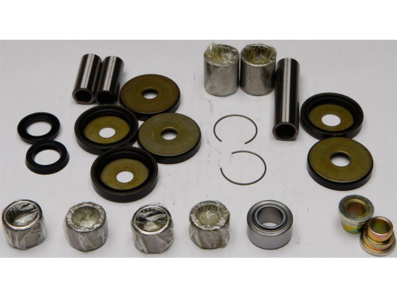 Contains all of the bearings (including the lower shock bearing kit), shafts, seals and bushings required to rebuild swing arm linkage to factory specifications