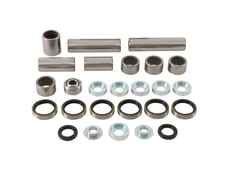 Contains all of the bearings (including the lower shock bearing kit), shafts, seals and bushings required to rebuild swing arm linkage to factory specifications