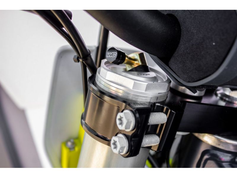 The Works Connection Air Fork EZ Fill is the solution for simple air fork pressure adjustment on the '13-'14 CRF450R and '13-'14 KX450F. The Air Fork EZ Fill rotates out to allow quick and easy access for your air gauge or pump and can be tucked out of harms way when you're finished. Works with standard and oversize bars, any bar mount/bar mount position, and eliminates the need to remove the front number plate. Installs in minutes with no modifications required.