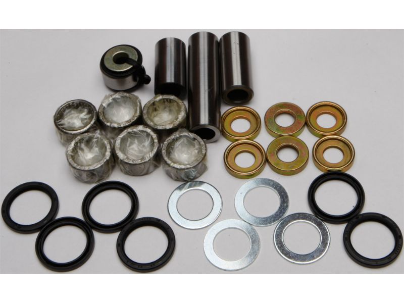Contains all of the bearings (including the lower shock bearing kit), shafts, seals and bushings required to rebuild swing arm linkage to factory specifications