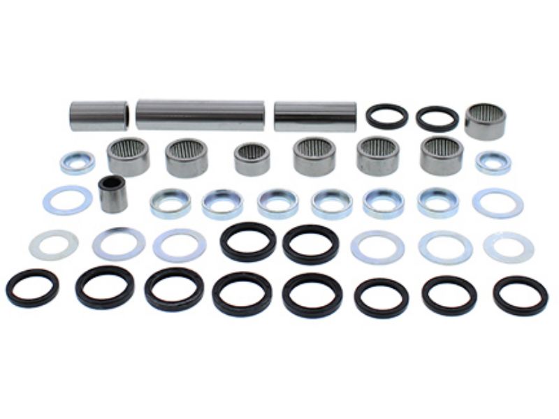 Contains all of the bearings (including the lower shock bearing kit), shafts, seals and bushings required to rebuild swing arm linkage to factory specifications