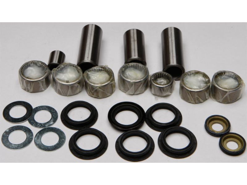 Contains all of the bearings (including the lower shock bearing kit), shafts, seals and bushings required to rebuild swing arm linkage to factory specifications