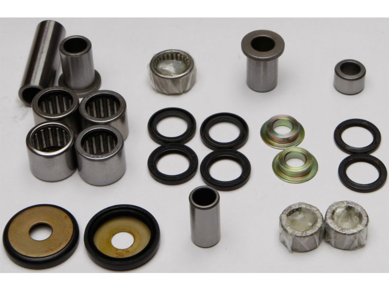 Contains all of the bearings (including the lower shock bearing kit), shafts, seals and bushings required to rebuild swing arm linkage to factory specifications