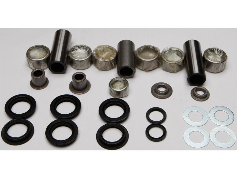 1. Contains all of the bearings (including the lower shock bearing kit), shafts, seals and bushings required to rebuild swing arm linkage to factory specifications