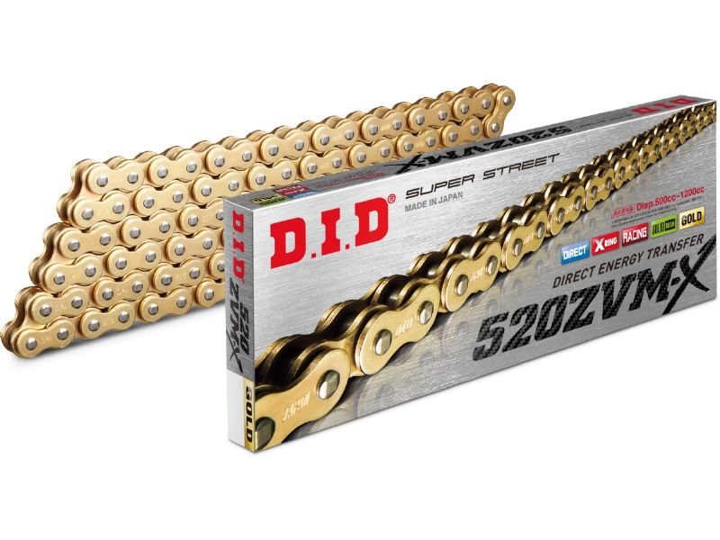 D.I.D’s Super Street Series X-Ring Chains were designed with increased power transfer from the engine to the ground, greater resistance to stretching under load and overall improved performance that meets the demands of current large displacement street bikes and the people who ride them. D.I.D's ZVM-X chains are the strongest high mileage chains.