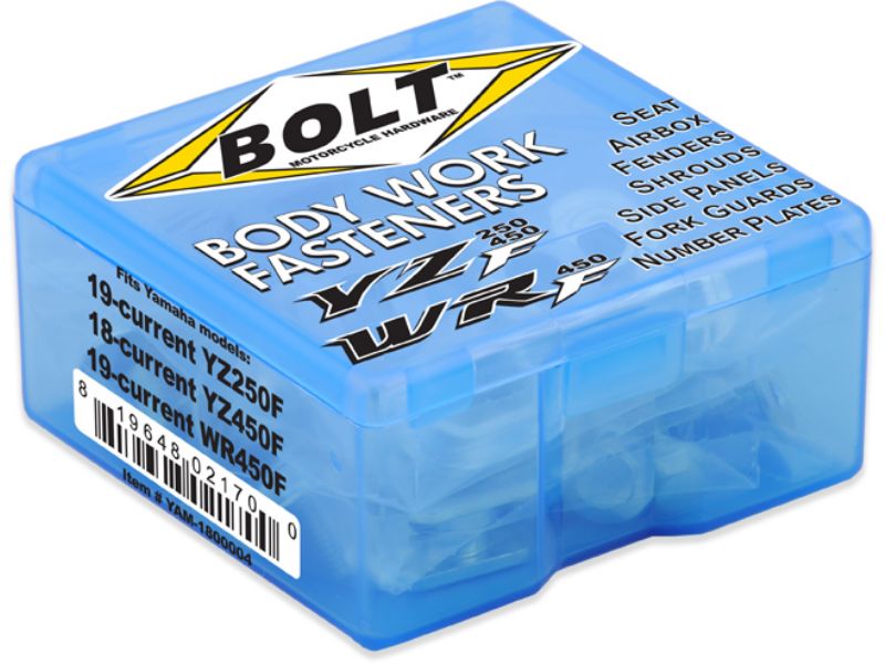 Body Work Fastener Kits contain all the OEM match fasteners and bushings to install your plastics including front and rear fenders, fork guards, radiator shrouds, side covers, and number plates