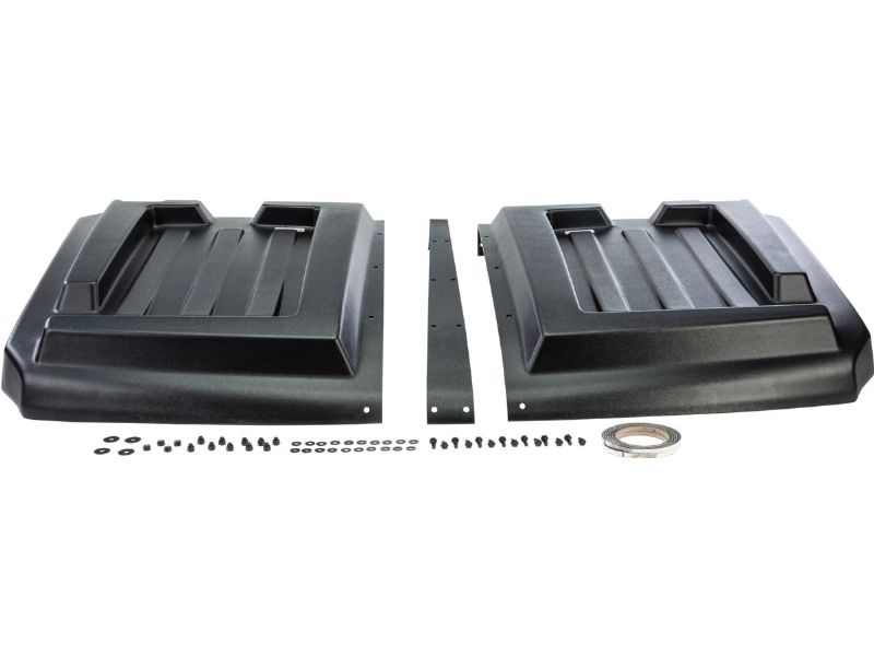 The Open Trail roof is made with 0.375" HDPE (High Density Polyethelene) for maximum strength and UV resistance. It is attached to your roll bars using five galvanized steel, rubber coated P clamps that are bolted to the roof.