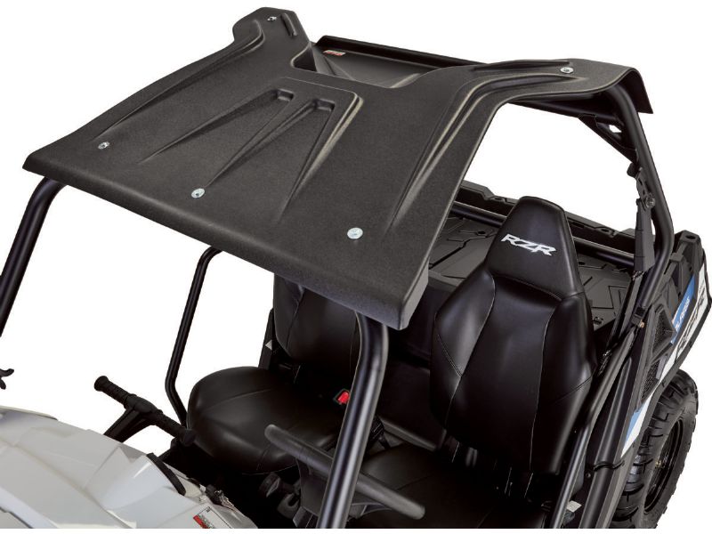 The Open Trail roof is made with 0.375" HDPE (High Density Polyethelene) for maximum strength and UV resistance. It is attached to your roll bars using five galvanized steel, rubber coated P clamps that are bolted to the roof.
