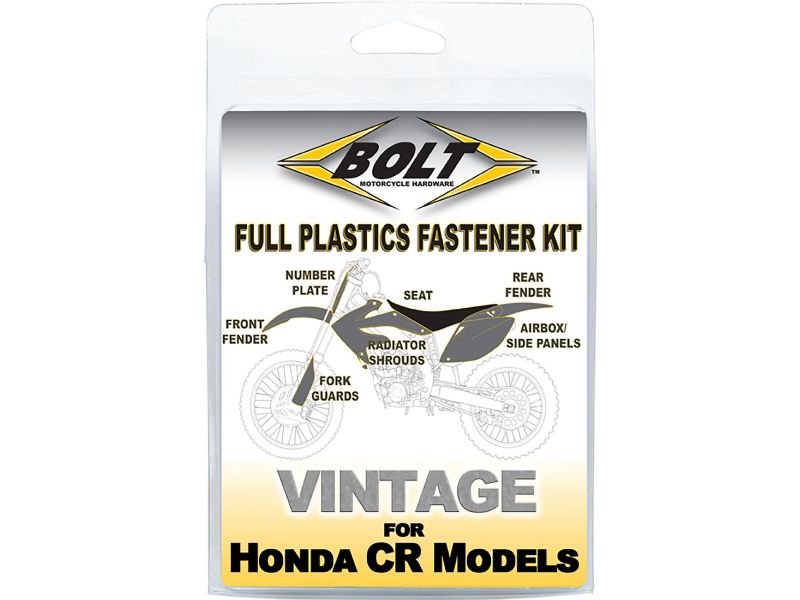 Body Work Fastener Kits contain all the OEM match fasteners and bushings to install your plastics including front and rear fenders, fork guards, radiator shrouds, side covers, and number plates