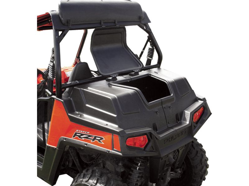 The Polaris RZR 800 cargo bed cover turns your bed into a cargo box that you can securely store your gear. The cover fits onto the top of the cargo bed. The product is shipped in two parts and must be assembled before its attached to the vehicle.