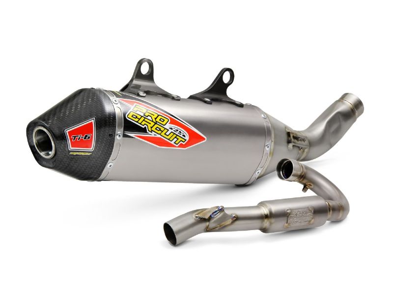 The Ti-6 Titanium Exhaust System is designed to improve performance and power over previous designs. Constructed of titanium throughout the head pipe, mid pipe and canister, this is the ideal exhaust for any off-road or closed course racer looking for improved performance, durability and a professional look. The Ti-6 system comes with a removable United States Forest Service (USFS) Approved Spark Arrestor making it easy to alternate between off-road and closed course riding.