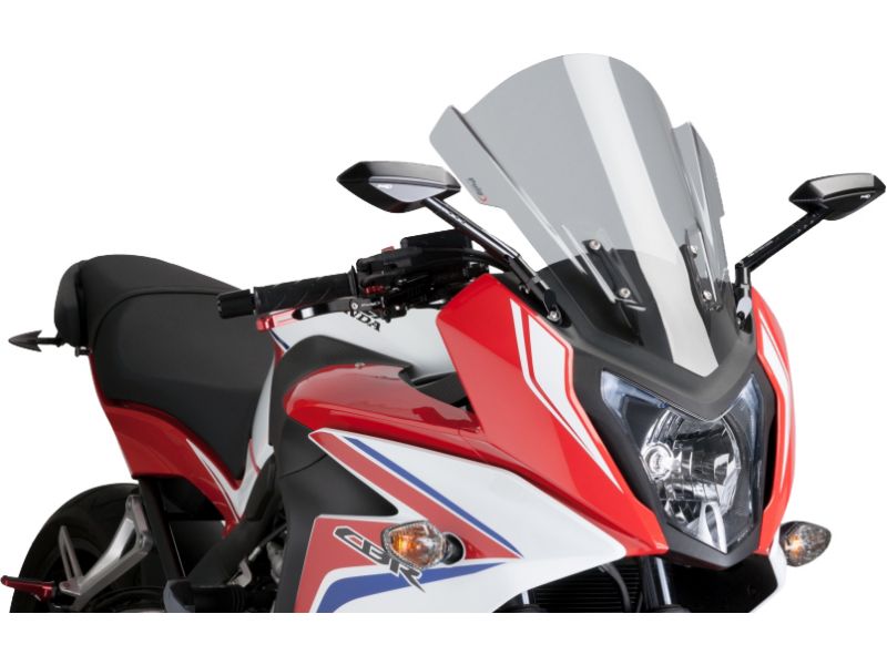 Racing - Double height windscreen that drives the air away from your helmet. For supersport bikes.