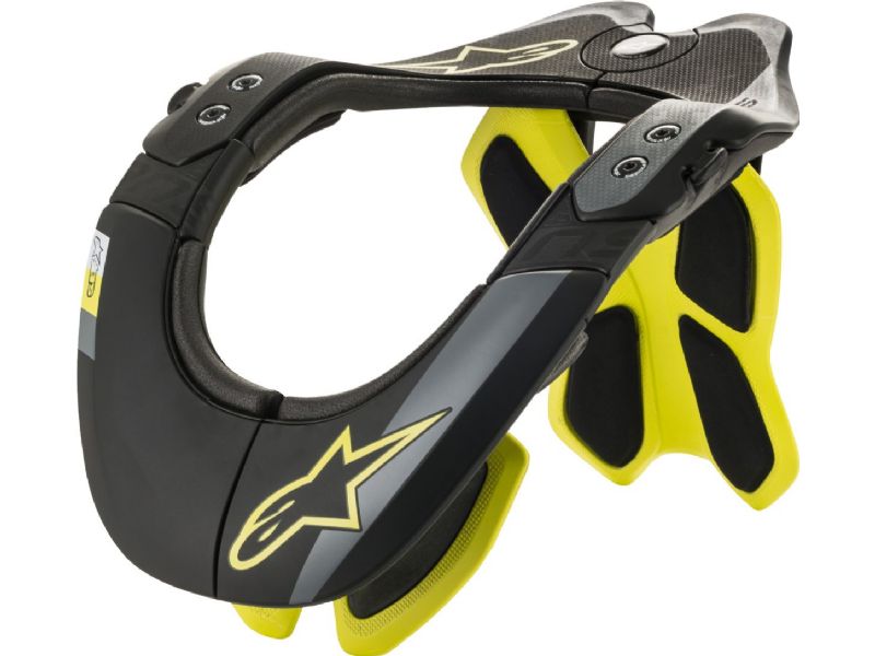 The Bionic Neck Support Tech 2 is constructed from an advanced, high-performance carbon polymer compound and is designed to help prevent injury in a crash situation by dissipating and diverting impact forces away from the neck and spine. The BNS functions when the rider’s helmet makes contact with the frame at the moment of a crash, thus providing a clean, solid surface which instantly channels damaging, compressive impact energy away from the neck and on to the BNS. Featuring Alpinestars’ exclusive and revolutionary rear stabilizer for progressive force relief (PFR) the BNS Tech 2 is designed for use in motocross and off-road riding and offers a highly personalized and stable fit while incorporating innovative new features such as a new quick release locking system.