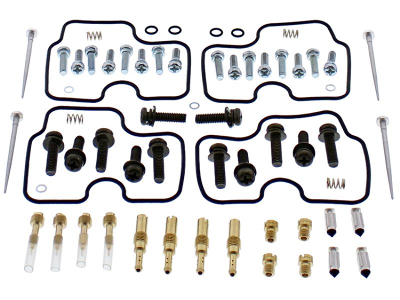 Kit includes necessary O-rings, gaskets, funnel gasket, jets, needle, mixture screw, float bowl screws, float valve needle and seat. (Needle jet and other pressed in jets are not included in kit)