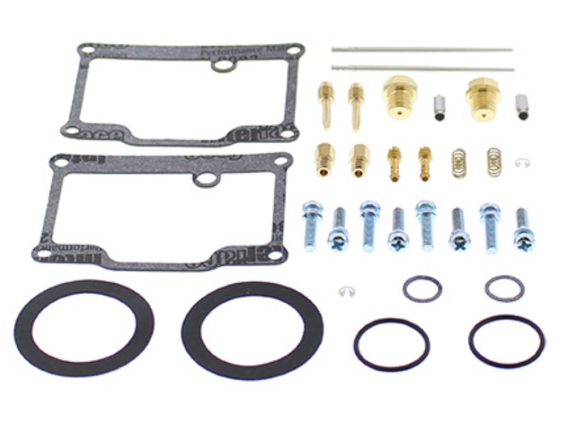 Kit includes necessary O-rings, gaskets, funnel gasket, jets, needle, mixture screw, float bowl screws, float valve needle and seat. (Needle jet and other pressed in jets are not included in kit)