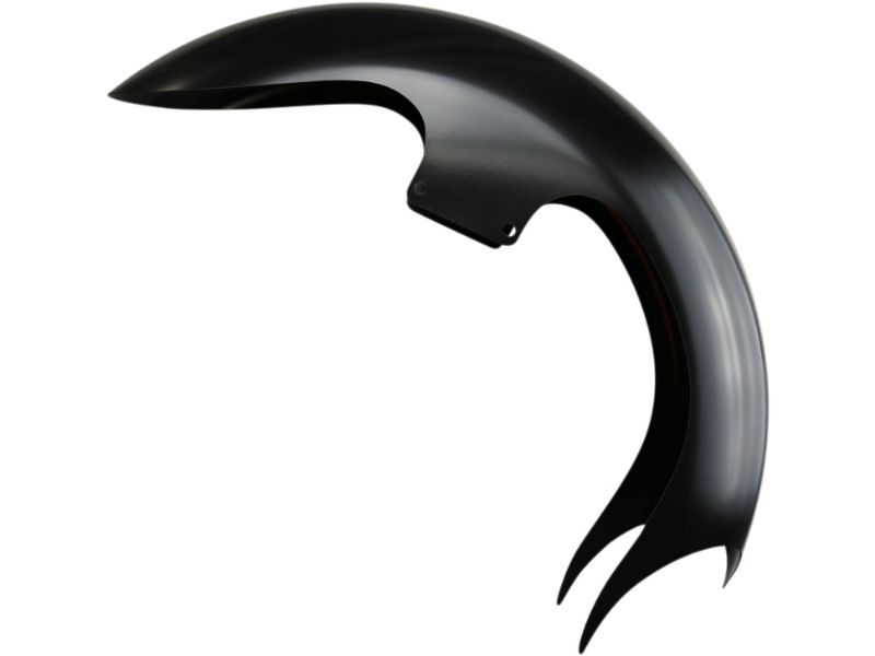 Add instant attitude to your Bagger with the latest addition to our front fender line. The Solid Steel Talon Fender is an aggressive and radically styled fender featuring a swooping claw-like design that draws your eyes right to the points! The edgy Talon Fender will set your bike apart from the crowd! Paul created all new tooling for our steel front fenders that allows them to be "deep-drawn" from one indestructible piece of 14-gauge steel! Each stamped fender is then precision lasercut for perfect symmetry. We’ve even drilled the mounting holes so you won’t have to touch a tool when you choose our fenders! No spinning, no welding, no seams or grooves that need to be body worked! Each fender is meticulously E-Coated so you can rest assured your fender will arrive corrosion free and remain corrosion free. These fenders are perfect… seriously, they are perfect! You can pull them right out of the box, scuff them, paint them and mount them! No drilling, no shaping of any kind is required. Your painter will love us…and you will too!
