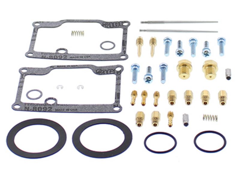 Kit includes necessary O-rings, gaskets, funnel gasket, jets, needle, mixture screw, float bowl screws, float valve needle and seat. (Needle jet and other pressed in jets are not included in kit)