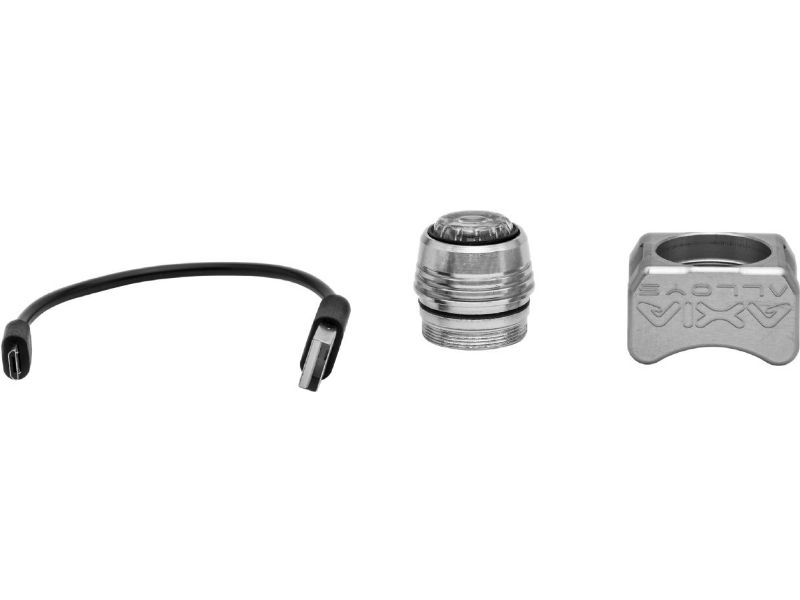 Internal battery will last months at rest and up to 3 hours turned on. Once it’s out of juice just unscrew the light assembly and plug it in to any USB outlet to charge with the supplied cable.