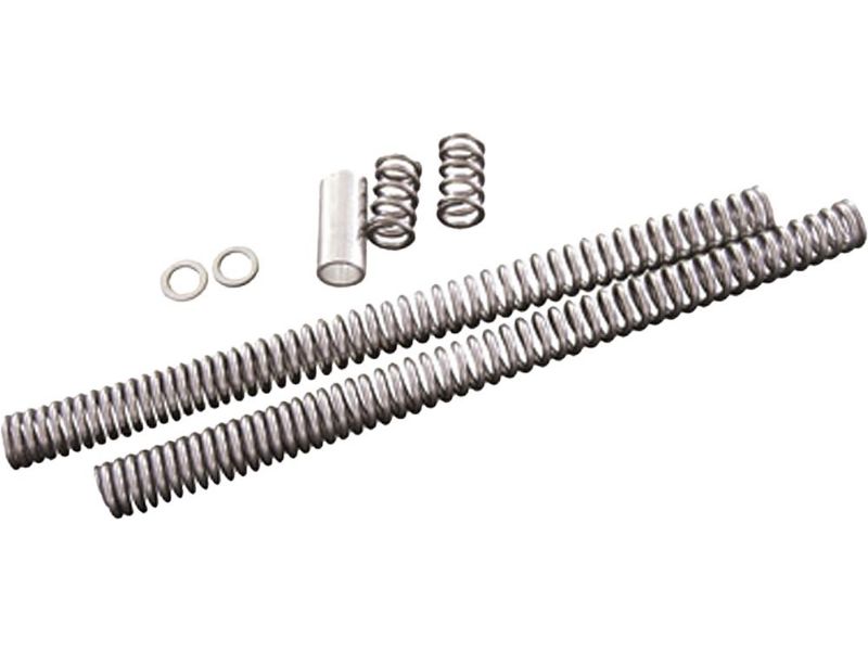 The Multirate lowering kits are engineered to lower the front end of your bike 1 to 2 inches and still preserve ride quality. The lowering springs undergo the same thorough process as the Multirate fork springs. The kit comes with two specially designed Multirate fork springs, washers, aluminum spacer, two lowering springs and instructions.