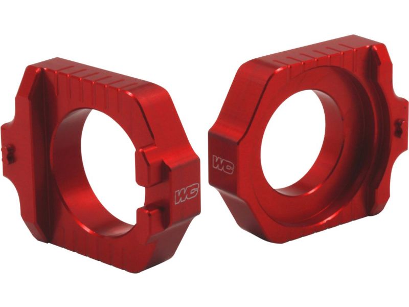 Consisting of a pair of CNC’d Elite axle blocks, a titanium drive-side receiver and a square removal tool nut, the Elite Axle Block Kit converts your stock Off-Road or Dual Sport model’s rear axle from a fixed design into a floating type. Factory teams use this same floating type design on their race team bikes to improve traction as well as straight line stability and now those same benefits are available from this kit. Another key component is the integrated receiver post on each axle block that allows the use of a caliper to precisely measure and match the left and right axle block’s position. This assures exact alignment of the chain and sprocket so critical to prolonging chain and sprocket life.