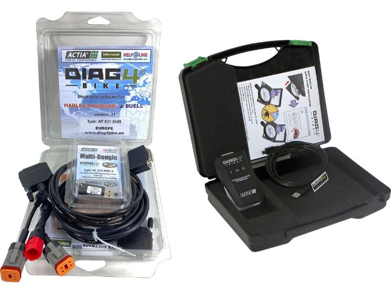 Professional diagnostic tool for Harley Davidson & Buell workshops and tuning centers. Diagnoses electronic fuel injection module (EFI) and others (Security modules, ABS, etc.) through the diagnostic connector. The system consists of a communication interface with Harley-Davidson adapter, USB cable for connection to your Laptop (PC) and software compatible with Windows XP, Vista, 7, 8 and 10. A wireless Bluetooth version of the interface is also available. An adapter for CAN-BUS models is included. The system performs the following functions and more. Software for Indian and Victory is also available.