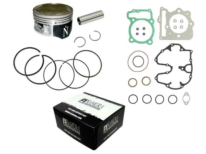 Top End kit includes: piston, rings, wrist pin, clips, top end bearing, and gasket kit