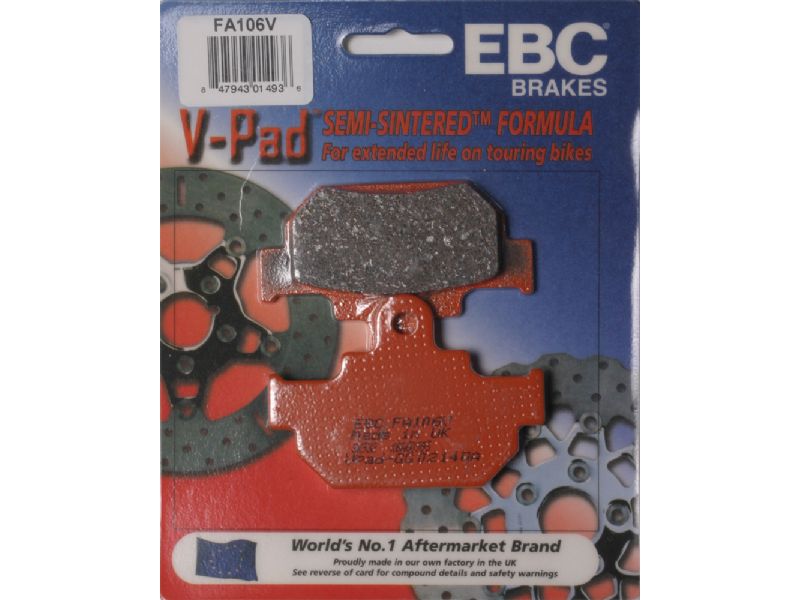 EBC Brakes™ Semi-Sintered V-Pads™ are a new blended Semi-Sintered brake pad that combine the highest qualities of an organic brake pad with the endurance of a sintered equivalent brake pad.