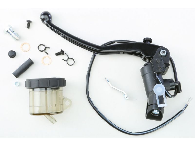 Included: Banjo bolt with sealing rings (M10x1), Remote reservoir, Standard clamp (without mirror mount), Brake light or start safety switch, ABE for brake fitments, Owner‘s Manual