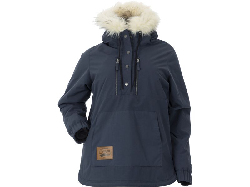 - Fixed hood with faux fur