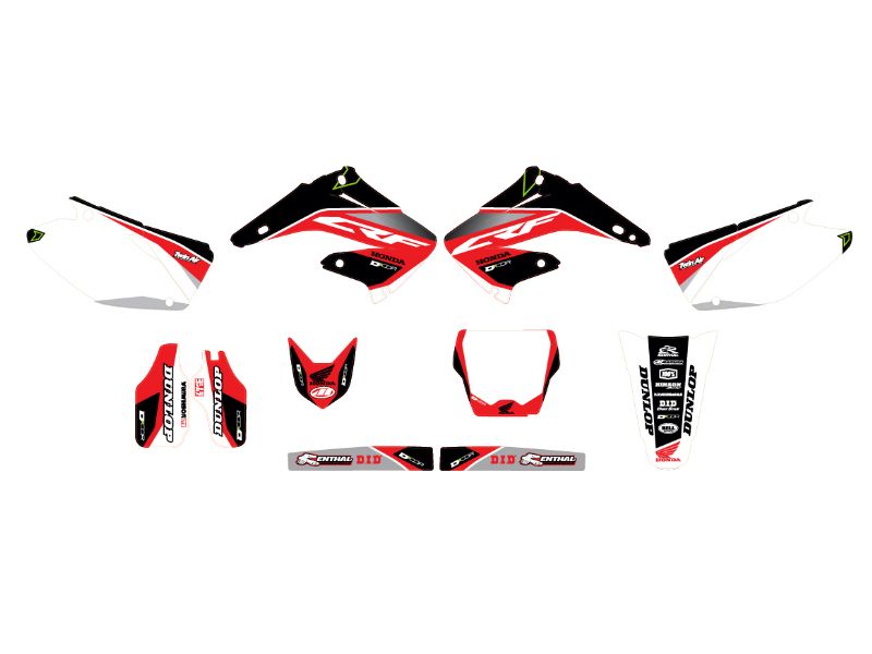 - Complete kit includes: Radiator shrouds, swingarm, front & rear fenders, lower fork guards, airbox, #plate backgrounds (blank)